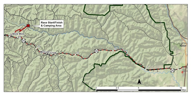 Once inside the Ranch gate, you will drive down a ranch graveled road to the race venue/camping, approximately 2.75 miles near the Canadian River.
